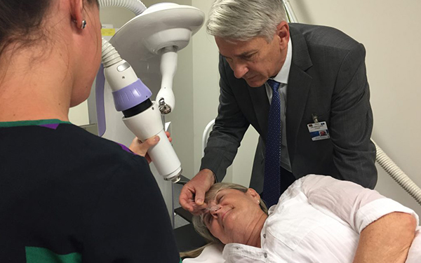 Radiation therapy can be an effective non-invasive way to treat skin cancers. Machines such as the Esteya Superficial Brachytherapy System available at Icon’s Greenslopes centre in Brisbane, mean doctors can treat early skin cancers non-invasively and effectively, with good cosmetic outcomes. For more advanced stages of skin cancer, volumetric arc radiation (VMAT) via a linear accelerator, the machine that delivers radiation therapy, gives doctors unprecedented control over the radiation dose they use, which allows them to better target complex lesions or tumours on the body without damaging the surrounding healthy areas. Linear accelerators can also be used to treat a range of skin cancers, from early to advanced stages. Radiation treatment for skin cancers also allows patients to continue their medication regimes, particularly for patients on blood thinning medications, such as warfarin.