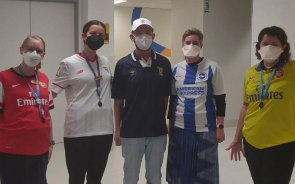 On day 27 the medical staff surprised me by all wearing a football shirt to mark the end of the radiation therapy phase of my life journey.