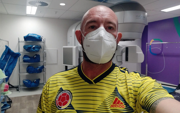 On day 27 the medical staff surprised me by all wearing a football shirt to mark the end of the radiation therapy phase of my life journey.