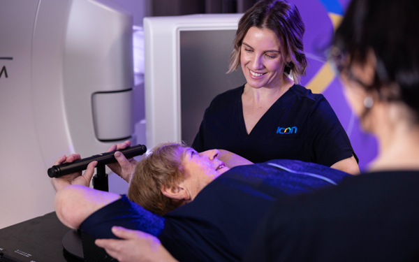 The system is directly linked to the treatment machine (linear accelerator) and only allows the radiation to be delivered when the chest is in the correct position. If it's not, don’t worry, the machine will not turn on unless you are in the correct breath hold. You'll be in control for the duration of the treatment.